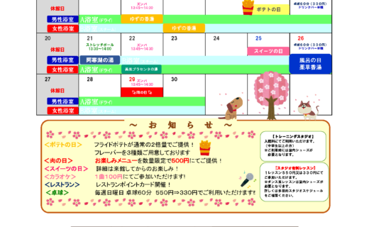 見逃せない!風呂の日(26日)、肉の日(29日)イベントデー開催のお知らせ