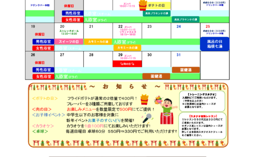 見逃せない!風呂の日(26日)、肉の日(29日)イベントデー開催のお知らせ